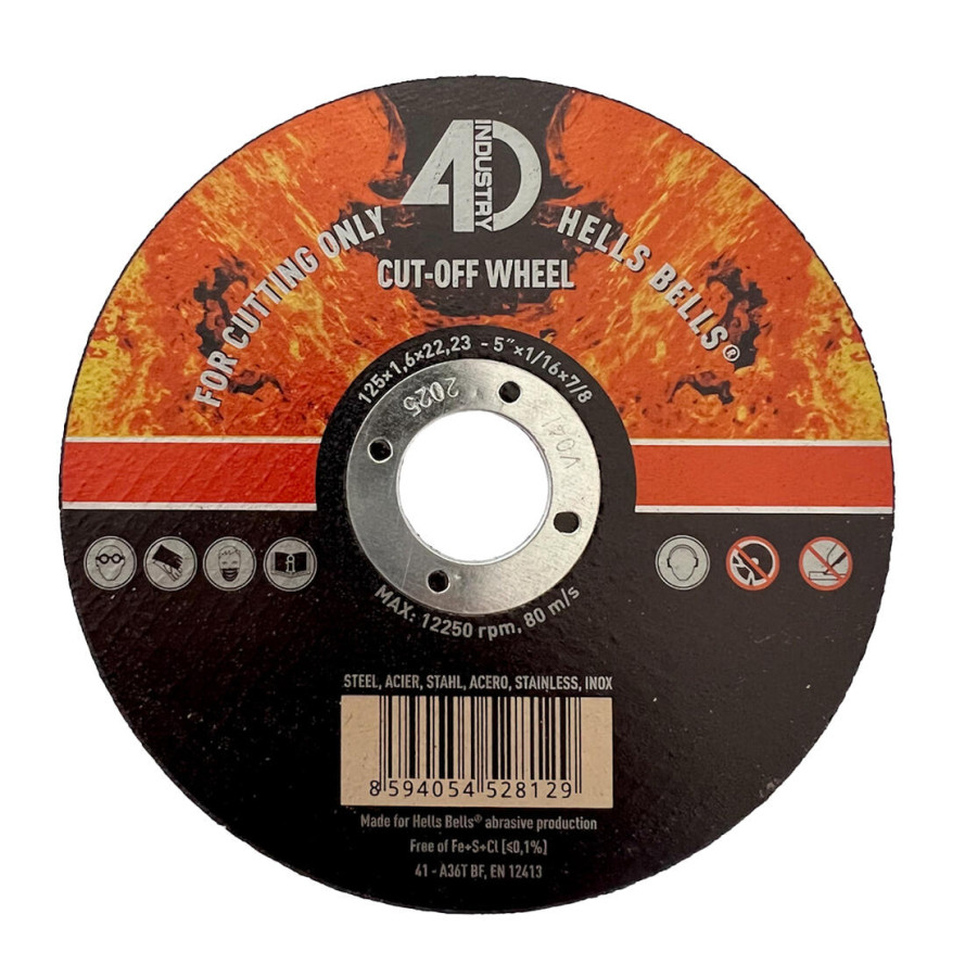 Kotouč řezný na ocel a nerez 125 x 1,6 x 22,2 mm. rozměry: 125 x 1,6 x 22,2 mm Řezné kotouče Hells Bells s bakelitovým pojivem jsou vyrobeny z prémiového korundového zrna, které je zárukou rychlého řezu a dlouhé životnosti. Neobsahují stopy železa, chlóru a síry. Jsou určeny pro řezání uhlíkových ocelí, konstrukčních ocelí a nerezových ocelí. Šířka přepravní: 12,5 cm Výška přepravní: 0,16 cm Hloubka přepravní: 12,5 cm Objem přepravní: 0,025 dm3 Hmotnost přepravní: 0,04316 kg Pozor křehké: