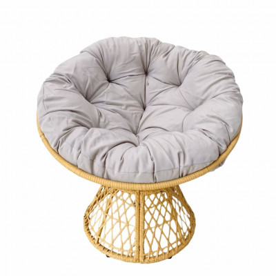 Ratanové křeslo s poduškou.