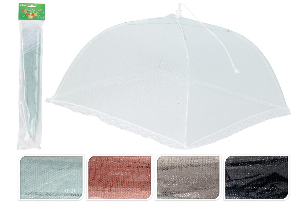 Kryt na potraviny skládací 30 cm, silon + kov, mix barev. průměr: 30 cm materiál: silon, kov mix barev: bílá, růžová, šedá, černá Skládací kryt na potraviny je šikovným pomocníkem proti otravnému hmyzu. Šířka přepravní: 2,5 cm Výška přepravní: 38 cm Hloubka přepravní: 7,1 cm Objem přepravní: 0,6745 dm3 Hmotnost přepravní: 0,038 kg Pozor křehké: