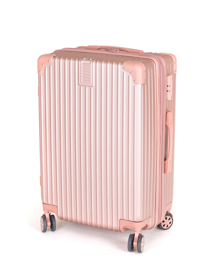 Kufr cestovní ABS25, 59 x 41 x 26 cm, 58 l, kolečka, PH, růžový. rozměry: 59 x 41 x 26 cm výška kufru včetně koleček: 65 cm objem: 58 l materiál: plast ABS barva: růžová hmotnost: 3,18 kg nosnost: 18 kg Cestovní skořepinový kufr na kolečkách ABS25, se zpevněnými rohy, velikosti M, ve zlatorůžové barvě, je vyrobený z kvalitního plastu ABS, který je odolný proti nárazu. Je opatřený 4 dvojitými kolečky otočnými o 360 stupňů, díky kterým je manipulace s kufrem velice snadná. Kufr má 3 plastová madla: boční a dvě horní, z nichž je jedno s teleskopickou rukojetí s pojistkou proti zasunutí a možností nastavitelné výšky ve více polohách. Kufr se uzavírá na zip a oba jezdce můžete spojit do kódového zámku TSA, který velmi uvítáte při náhodných kontrolách na letišti. Vnitřní část kufru má látkovou dělící přepážku s kapsou a křížové upínání pro lepší fixaci a uspořádání vašich věcí. Kufr je vybaven expanderem, díky kterému je možné po rozepnutí 1 zipu kufr rozšířit do hloubky o několik cm a objemově tak zvětšit prostor až o pětinu. Výška přepravní: 47 cm Šířka přepravní: 28 cm Hloubka přepravní: 68 cm Objem přepravní: 89,488 dm3 Hmotnost přepravní: kg Pozor křehké: