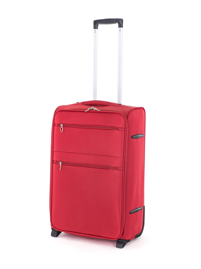 Kufr cestovní TEX15, 60 x 40 x 23 cm, 54 l, kolečka, textilní, červený. rozměry: 60 x 40 x 23 cm výška kufru včetně koleček: 63 cm objem: 54 l materiál: textilie barva: červená hmotnost: 3 kg nosnost: 18 kg Cestovní textilní kufr TEX15, velikosti M, v červené barvě,, je vyrobený z textilie, což ocení především cestovatelé, pro které je důležitá nízká hmotnost zavazadla. Je opatřený 2 kolečky pro snadné přemístění zavazadla. Kufr má 2 textilní madla (boční a horní) a 1 plastové s teleskopickou rukojetí s pojistkou proti zasunutí a možností nastavitelné výšky ve více polohách. Díky vůli textilie, je prostor kufru možné drobně přizpůsobit. Ve vnitřním prostoru naleznete jistící popruhy a vnitřní kapsu pro lepší fixaci a uspořádání vašich věcí. Dále má dvě vnější kapsy pro umístění drobnějších věcí. Kufr se uzavírá na zip. Výška přepravní: 21 cm Šířka přepravní: 42 cm Hloubka přepravní: 64 cm Objem přepravní: 56,448 dm3 Hmotnost přepravní: kg Pozor křehké: