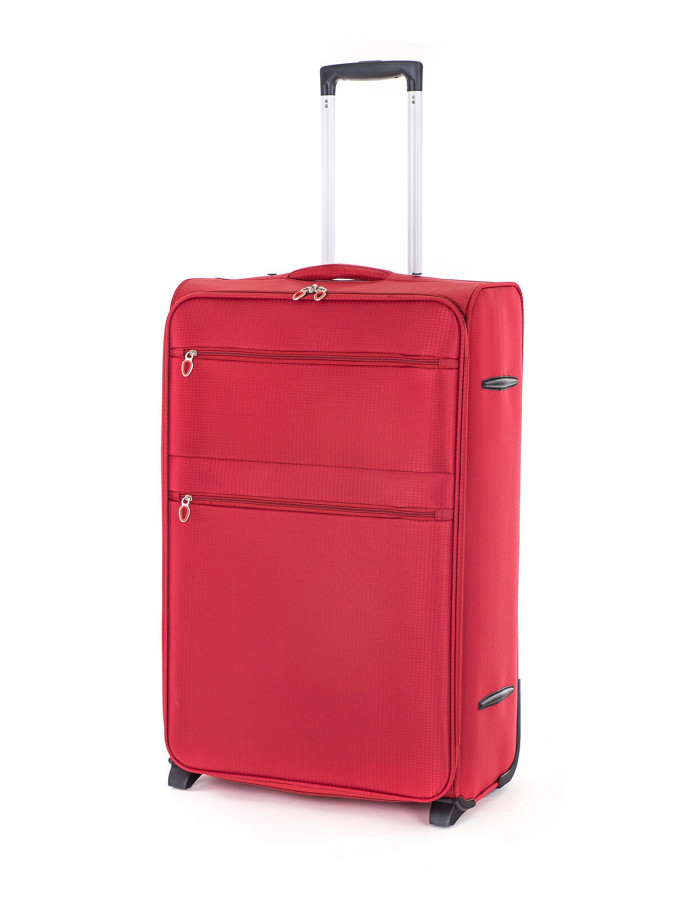 Kufr cestovní TEX15, 70 x 47 x 26 cm, 85 l, kolečka, textilní, červený. rozměry: 70 x 47 x 26 cm výška kufru včetně koleček: 73 cm objem: 85 l materiál: textilie barva: červená hmotnost: 3,8 kg nosnost: 23 kg Cestovní textilní kufr TEX15, velikosti L, v červené barvě,, je vyrobený z textilie, což ocení především cestovatelé, pro které je důležitá nízká hmotnost zavazadla. Je opatřený 2 kolečky pro snadné přemístění zavazadla. Kufr má 2 textilní madla (boční a horní) a 1 plastové s teleskopickou rukojetí s pojistkou proti zasunutí a možností nastavitelné výšky ve více polohách. Díky vůli textilie, je prostor kufru možné drobně přizpůsobit. Ve vnitřním prostoru naleznete jistící popruhy a vnitřní kapsu pro lepší fixaci a uspořádání vašich věcí. Dále má dvě vnější kapsy pro umístění drobnějších věcí. Kufr se uzavírá na zip. Výška přepravní: 46 cm Šířka přepravní: 29 cm Hloubka přepravní: 74 cm Objem přepravní: 98,716 dm3 Hmotnost přepravní: 4,05 kg Pozor křehké: