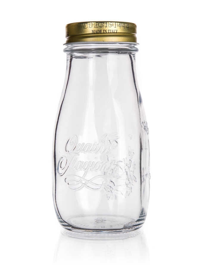 Láhev 400 ml QUATTRO STAGIONI, skleněná s víčkem. objem: 400 ml materiál: sklo, kovové víčko Dóza QUATTRO STAGIONI s kovovým víčkem je vhodná nejen k zavařování, ale i k uchovávání potravin. Lze ji využít i jako lahev na pití. Výška přepravní: 15,5 cm Šířka přepravní: 7 cm Hloubka přepravní: 7 cm Objem přepravní: 0,7595 dm3 Hmotnost přepravní: 0,257 kg Pozor křehké: Ano