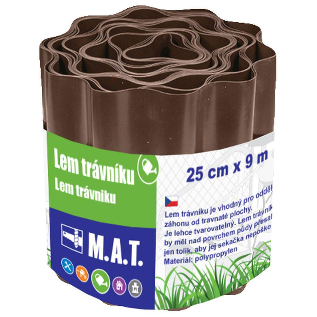 Lem trávníku plastový 25 cm x 9 m, hnědý. - tvar vlna - trávníkový lem se snadno instaluje - flexibilní zahradní plastová trávníková obruba s dlouhou životností - k lemování trávníkových okrajů a záhonů Trávníková obruba zabraňuje přerůstání trávy. Perfektní pro oddělení trávníku od záhonů, chodníčků apod. barva: hnědá rozměry: délka 9 m, výška 25 cm Šířka přepravní: 14 cm Výška přepravní: 25 cm Hloubka přepravní: 14 cm Objem přepravní: 4,9 dm3 Hmotnost přepravní: 1,25 kg Barva: hnědá Výška: 25 cm Délka: 9 m Vlastnost: Balení: Oko: mm Povrchová úprava: Napínací drát: Typ pletiva: Použití: Průměr drátu: Pozor křehké:
