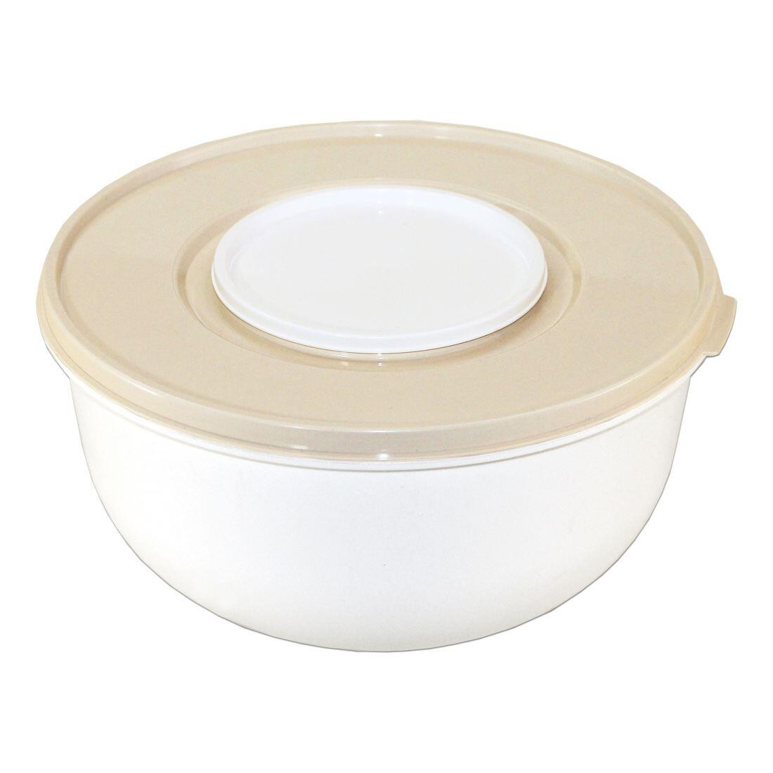 Mísa rychlekynoucí a šlehací 5 l, s víkem, PH mix barev + stěrky zdarma. objem: 5 l materiál: plast bílá mísa / barevné víko mix barev: růžová, modrá, zelená, béžová, šedá K míse jsou přibaleny stěrky. Mísa má široké využití zejména v kuchyni - pro šlehání, zadělávání těsta, zhotovování krému, míchání salátu, nakládání masa a podobně. Víko je opatřeno menším otvorem, kdy stačí odklopit vnitřní víčko a tím zamezíte jakémukoli znečištění pracovního prostoru při samotném šlehání. Rychlekynoucí mísa nejen výrazně zkrátí dobu kynutí, ale víko po vykynutí těsta i samo „odskočí“ a vy tak poznáte, že je těsto hotové. Při přípravě těsta vložíte suroviny do mísy, zamícháte a přiklopíte. Poté víko v jednom místě trochu pootevřete, vyfouknete přebytečný vzduch, uzavřete a už stačí pouze počkat, až víko „odskočí“. Mísu i s víkem lze dát do mrazáku. Mísu bez víka je možno mýt v myčce nádobí při teplotě do 70° C. Víko není vhodné do myčky nádobí. Šířka přepravní: 29 cm Výška přepravní: 29 cm Hloubka přepravní: 14,5 cm Objem přepravní: 12,1945 dm3 Hmotnost přepravní: 0,48 kg Barva: Materiál: plast Licence: Počet kusů v balení: 0 Zařazení - jídelna: Mísy a dózy Typ příborů: Objem: 5000 ml Typ mísy: kuchyňská mísa Typ nádobí: Typ sklenice: Listingový popis: Určení: Typ podnosu: Pozor křehké: