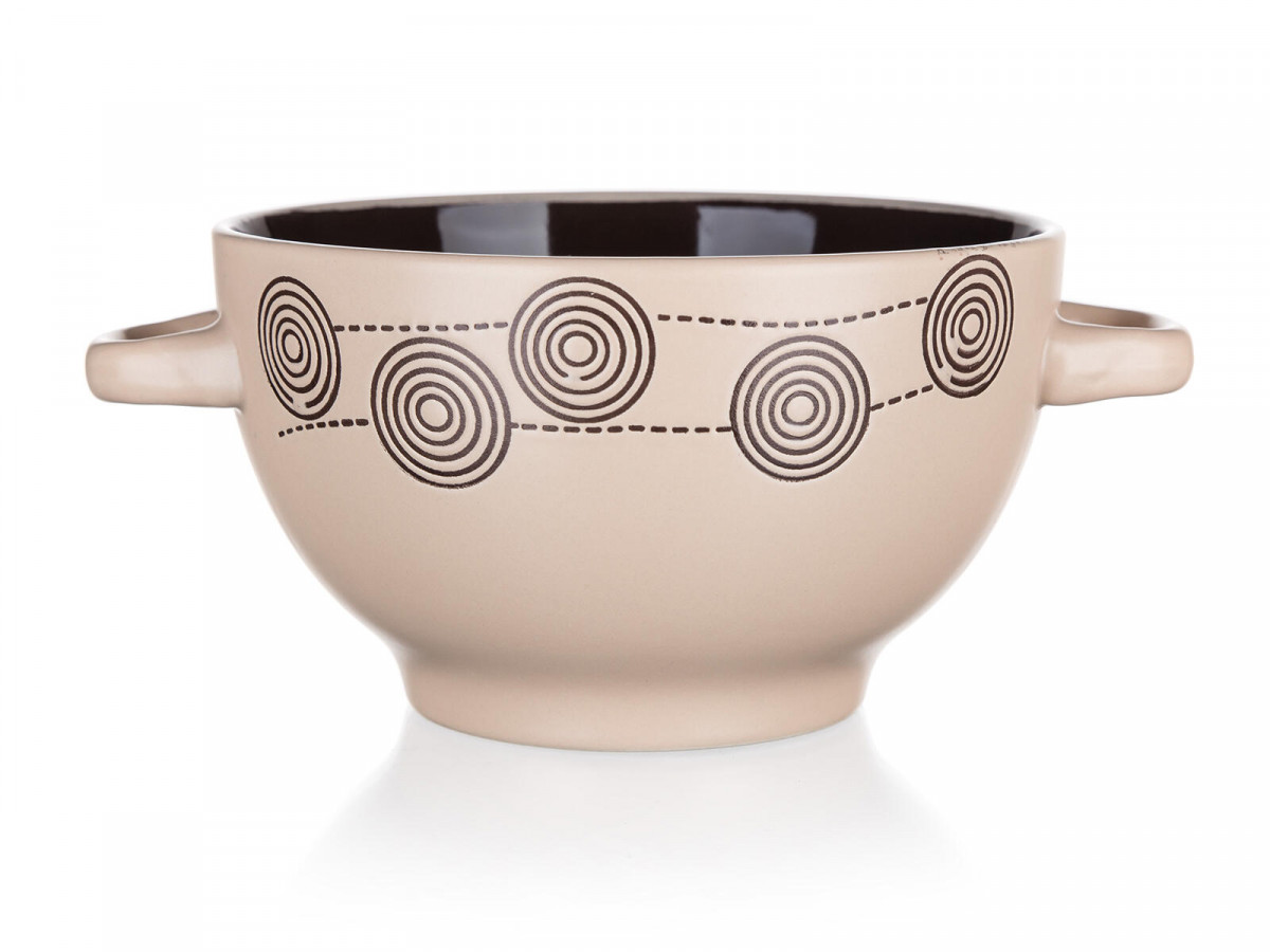 Miska 13,5 cm, SPIRÁLA, KRÉM, keramická. průměr: 13,5 cm výška: 8 cm objem: 660 ml materiál: keramika barva: krémová Miska s uchy s dekorem Spirála, je vyrobena z keramiky. Misku lze používat do mikrovlnné trouby a mýt v myčce na nádobí. Výška přepravní: 8 cm Šířka přepravní: 14 cm Hloubka přepravní: 18 cm Objem přepravní: 2,016 dm3 Hmotnost přepravní: 0,338 kg Pozor křehké: Ano
