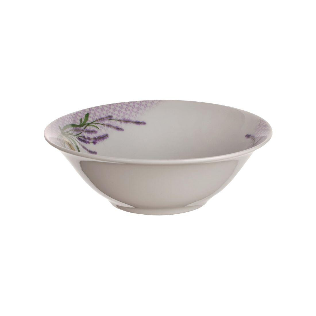 Miska 15,2 cm, LAVENDER, porcelánová. průměr: 15,2 cm materiál: porcelán bílá glazura s dekorem levandule Porcelánové misky, které jsou díky svému jemnému dekoru velice oblíbené, ale zároveň vhodné do myčky či mikrovlnné trouby. Najde své využití při servírování polévky, salátů či jiných pokrmů. Šířka přepravní: 16 cm Výška přepravní: 5 cm Hloubka přepravní: 16 cm Objem přepravní: 1,28 dm3 Hmotnost přepravní: 0,23 kg Pozor křehké: Ano