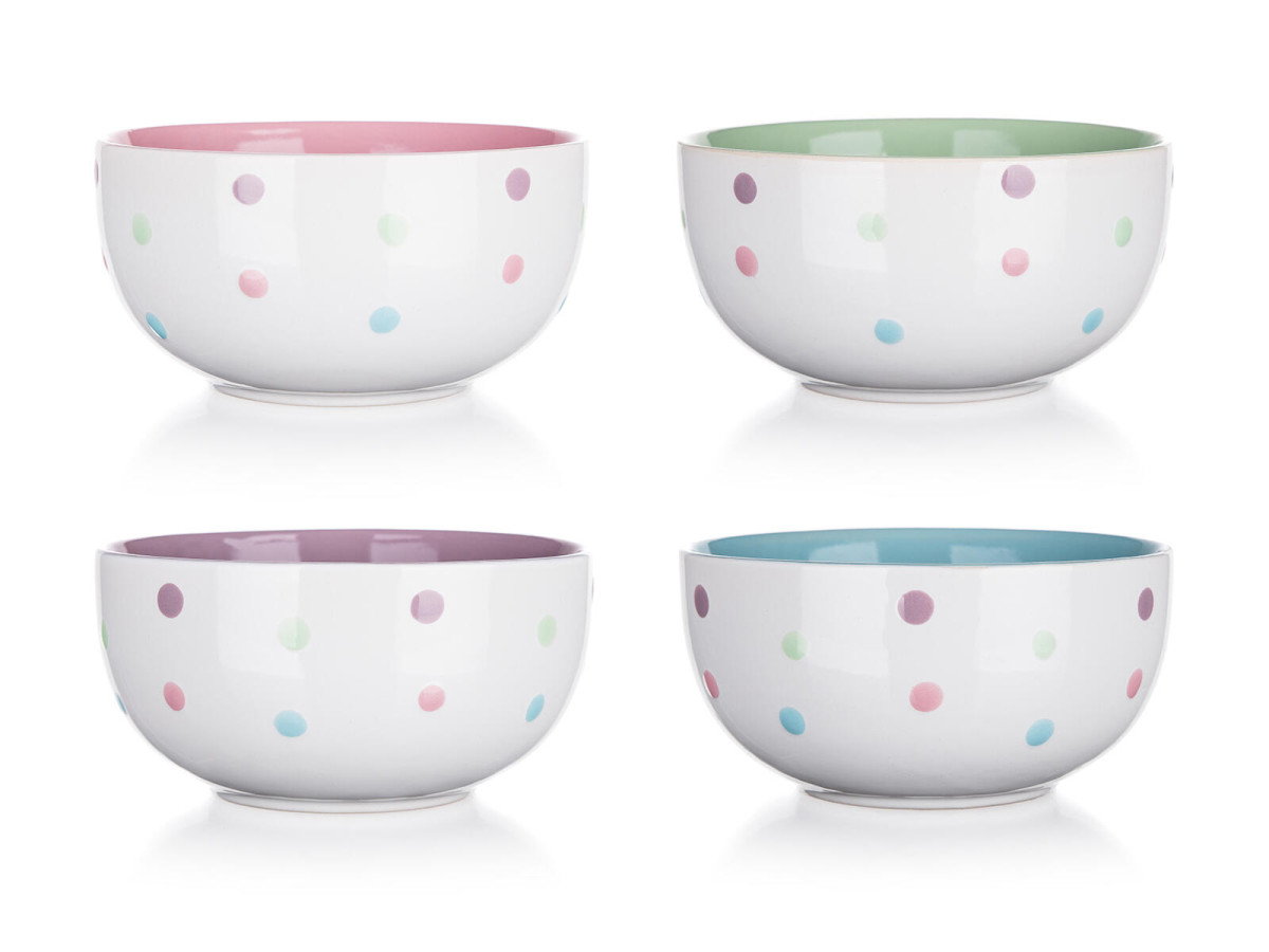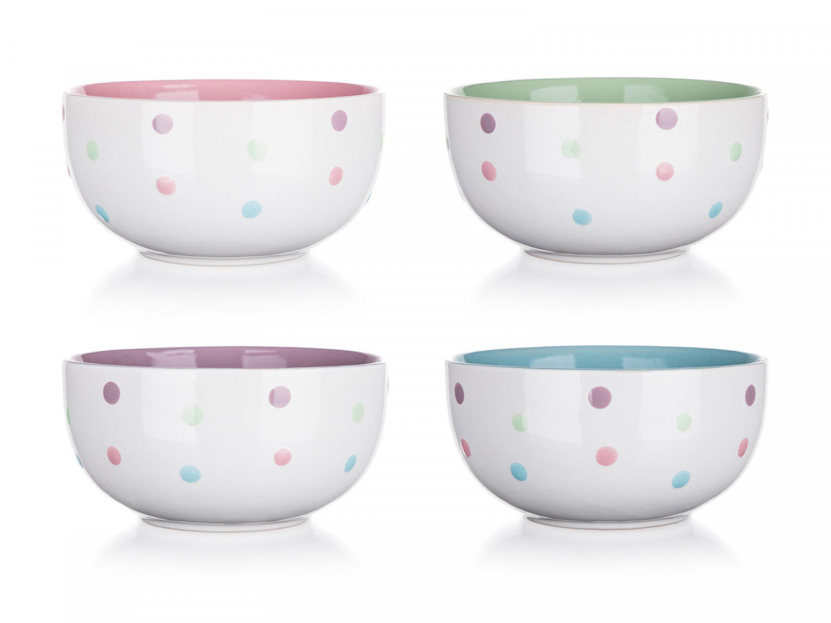 Miska 520 ml, PUNTÍKY, keramická mix barev. objem: 520 ml materiál: keramika mix barev: růžová, fialová, modrá, zelená Miska PUNTO je keramická miska k podávání horkých i studených pokrmů. Šířka přepravní: 14 cm Výška přepravní: 6,5 cm Hloubka přepravní: 14 cm Objem přepravní: 1,274 dm3 Hmotnost přepravní: 0,323 kg Pozor křehké: