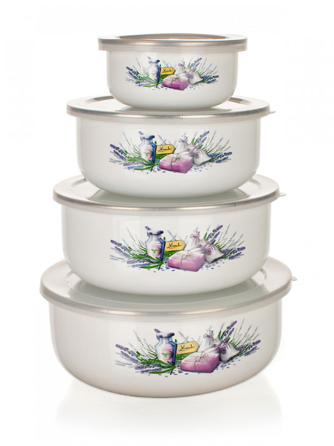 miska sada 8díl. (10,14,16,18cm + 4 víčka) smalt LAVENDER