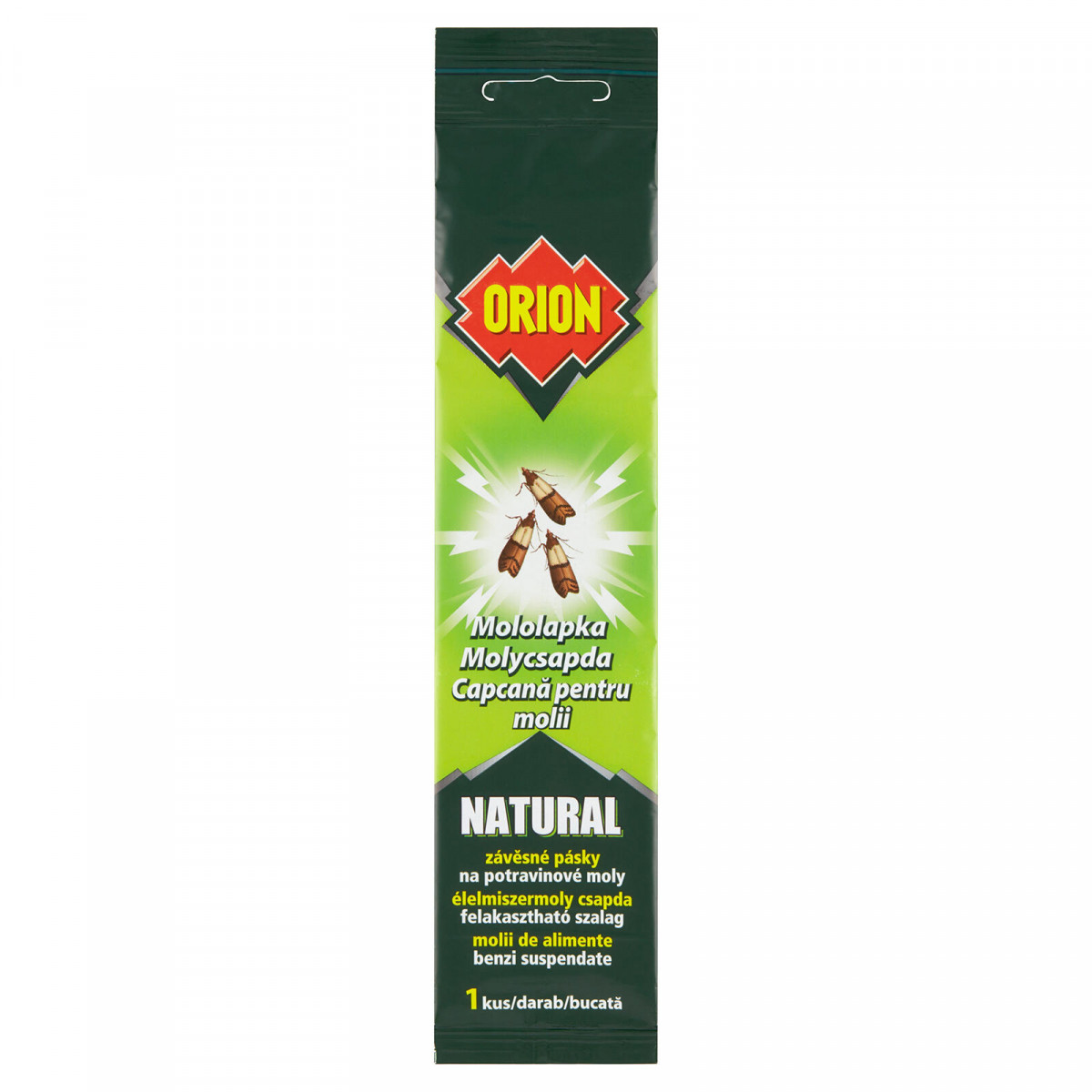 Mololapka ORION NATURAL závěsné pásky (1 ks). ORION NATURAL mololapka závěsné pásky jsou kombinací účinku lepicích vlastností povrchu pásu a účinné látky feromonu. Pásky lze umístit do skříní v těsné blízkosti potravin rostlinného původu. Šířka přepravní: 6 cm Výška přepravní: 28,2 cm Hloubka přepravní: 0,92 cm Objem přepravní: 0,155664 dm3 Hmotnost přepravní: 0,01 kg Pozor křehké: