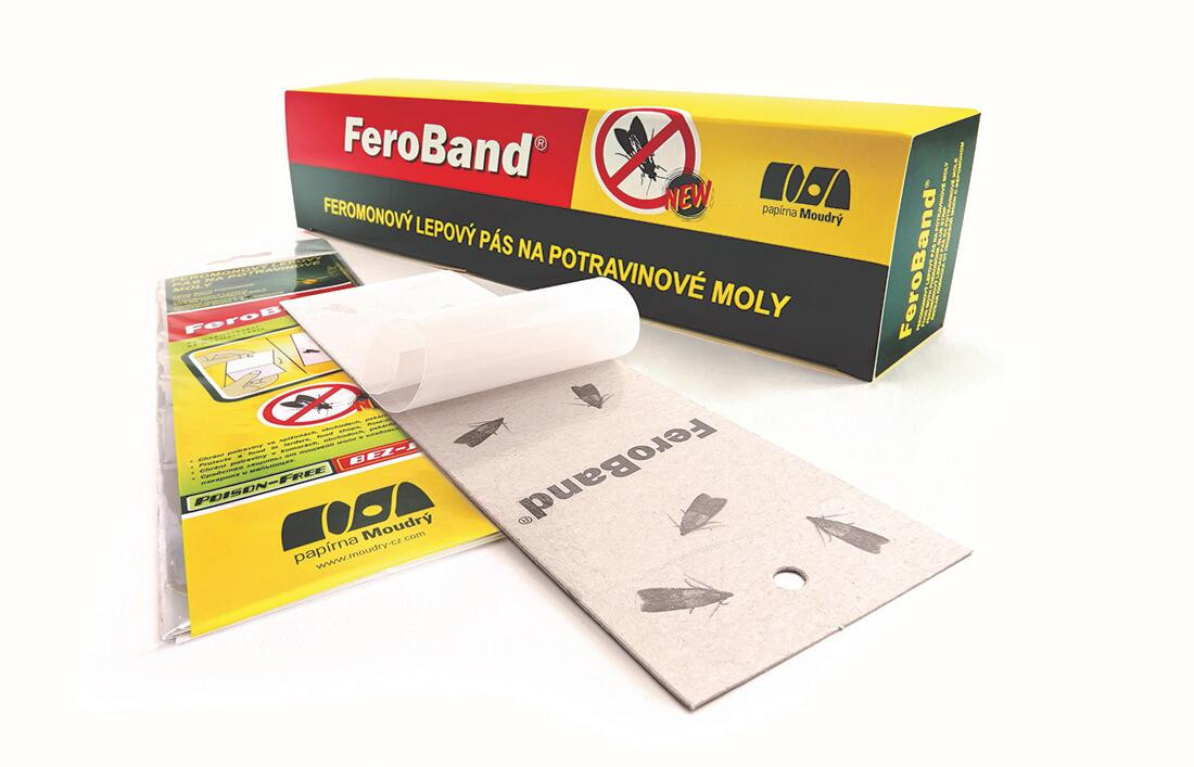Mololapka pásová na potravinové moly FeroBand. Jednostranně lepicí papírový pás opatřený feromonem, který zaručuje účinný odchyt samců 4 druhů potravinových molů - zavíječe skladištního (Ephestia elutella), moučného (Ephestia kuehniella), datlového (Ephestia cautella) a paprikového (Plodia interpunctella). Lapač Lze zavěsit kamkoliv pomocí háčku nebo provázku. Šířka přepravní: 6,8 cm Výška přepravní: 26 cm Hloubka přepravní: 0,2 cm Objem přepravní: 0,03536 dm3 Hmotnost přepravní: 0,0071 kg Pozor křehké: