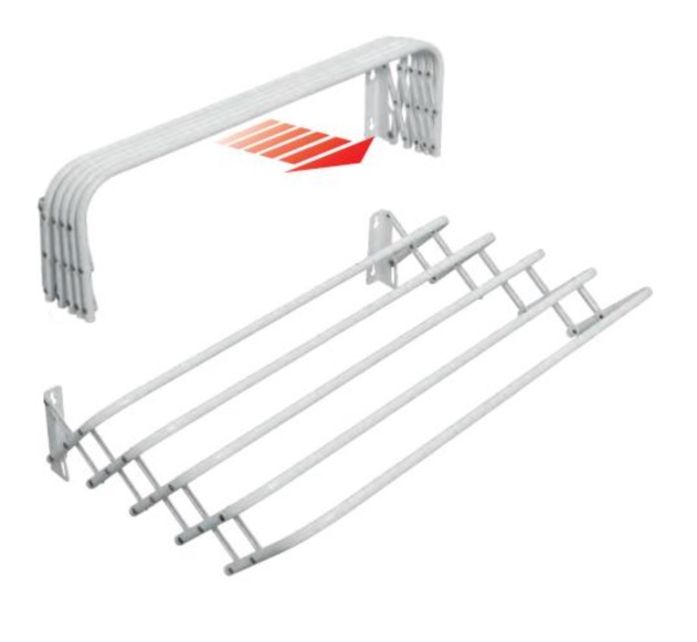 Nástěnný harmonikový výsuvný sušák na prádlo, vhodný na stěnu do koupelen, interiérů i exteriérů. Praktická možnost složení, pokud není sušák používán.