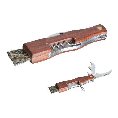 nůž na houby zavírací se štětečkem + otvíráky, dřev.rukojeť
