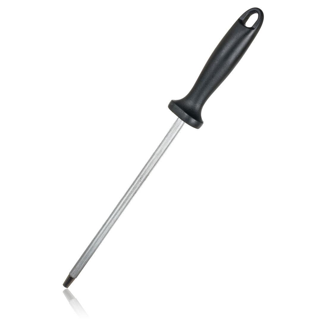 Ocílka 330 mm CULINARIA. Profesionálové ostří nože pomocí brousku po každém použití. V domácím prostředí je však jedno využití nože natolik krátké, že jej není nutno ostřit tak často. Nože, které využíváte nejčastěji, je zapotřebí naostřit přibližně jednou za měsíc. Hřbet nože natočte směrem ven tak, aby brusný úhel dosahoval velikosti přibližně 20° stupňů. Řezné ostří po obou stranách s jistotou několikrát přetáhněte přes brousek. Na brousek příliš netlačte. Šířka přepravní: 8 cm Výška přepravní: 2,5 cm Hloubka přepravní: 39 cm Objem přepravní: 0,78 dm3 Hmotnost přepravní: 0,166 kg Pozor křehké: