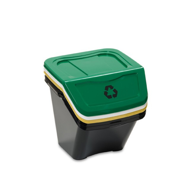 Sada tří košů na tříděný odpad, na snadné roztřídění skla, papíru a plastu. Koše jsou vyrobené z plastu, který je odolný nízkým teplotám, koše se tedy hodí jak do vnitřních tak venkovních prostor.