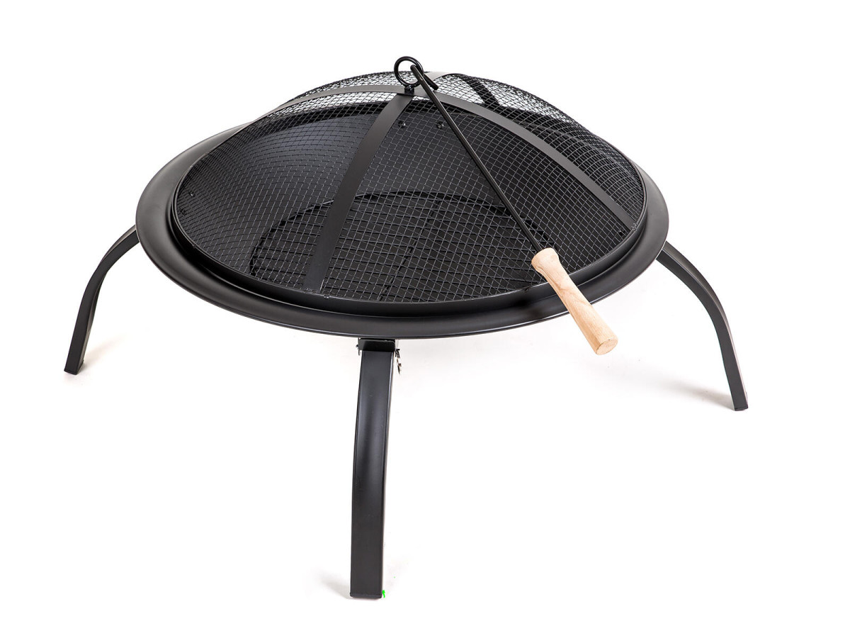 Ohniště pr. 55 cm, s poklopem, PLATE. průměr: 55 cm výška: 42 cm materiál: kov Přenosné kovové zahradní ohniště, plochého typu, se zabudovaným roštem. S černou povrchovou úpravou odolávající vysokým teplotám. Ohniště je vybaveno síťovým poklopem proti odlétání drobných uhlíků. Ohniště je usazeno na snadno složitelných nožkách, umožňujících úsporné skladování. Výška přepravní: 57 cm Šířka přepravní: 17 cm Hloubka přepravní: 57 cm Objem přepravní: 55,233 dm3 Hmotnost přepravní: 3,192 kg Pozor křehké: