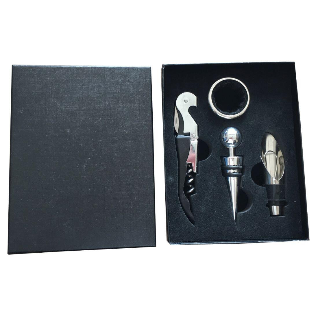 materiál: Zn, ABS Čtyřdílná sada obsahuje otvírák na lahve s vývrtkou a nožíkem, uzávěr na lahve, kroužek na hrdlo láhve, nálevku. Baleno v dárkové krabičce. Hmotnost přepravní: 0,22 kg Barva: stříbrná Typ barman: Vývrtka/otvírák Šířka přepravní: 12 cm Výška přepravní: 3 cm Hloubka přepravní: 16 cm Objem přepravní: 0,576 dm3 Materiál: Sety na víno: Listingový popis: Určení: Pozor křehké: