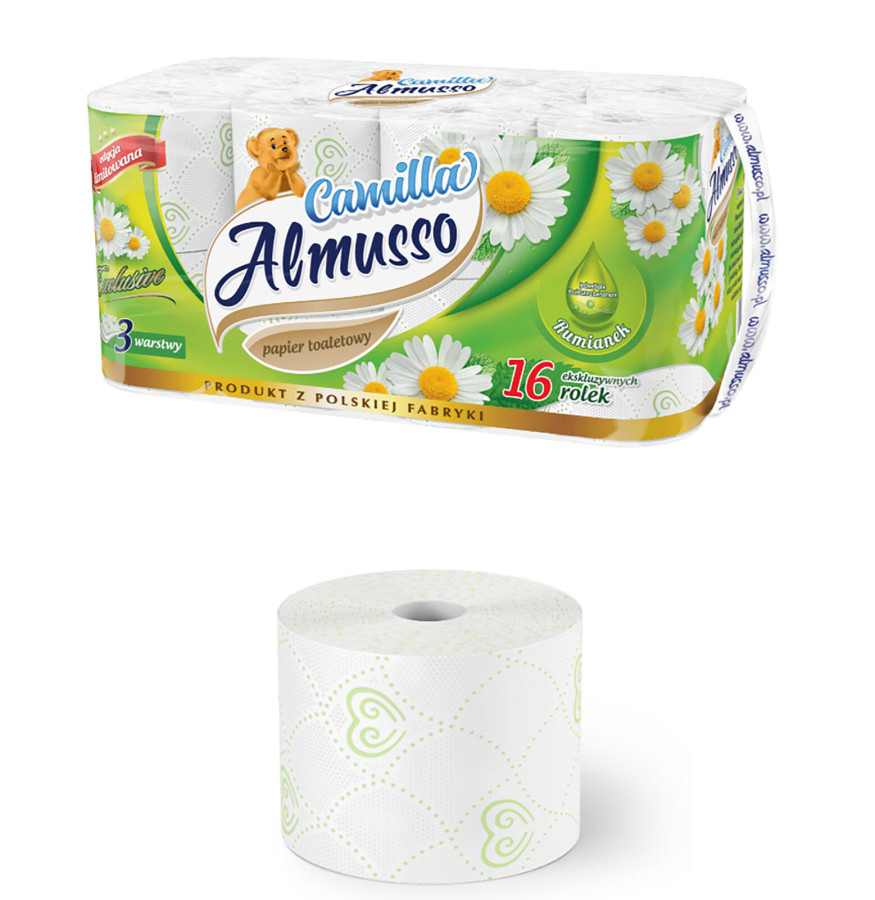 Papír toaletní CAMILLA 3vrstvý BÍ (16 ks). 16 rolí 3-vrstvý barva: bílá Jemný bílý třívrstvý toaletní papír je vhodný pro každodenní používání. Výška přepravní: 20 cm Šířka přepravní: 40 cm Hloubka přepravní: 22 cm Objem přepravní: 17,6 dm3 Hmotnost přepravní: 1,03 kg Pozor křehké: