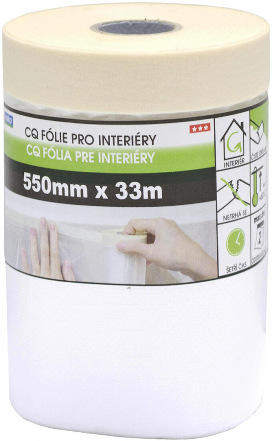 Páska krycí interiérová 55 cm x 33 m, samolepicí, se zakrývací folií. rozměry: 55 cm x 33 m - CQ fólie pro interiéry - nosič hladký krep, lepidlo kaučuk - materiál HDPE, síla 0,010 mm - odstranitelná beze stop do 2 dnů - pro zakrytí rozsáhlých ploch - na hladké povrchy Šířka přepravní: 8 cm Výška přepravní: 5,5 cm Hloubka přepravní: 8 cm Objem přepravní: 0,352 dm3 Hmotnost přepravní: 0,18 kg Pozor křehké: