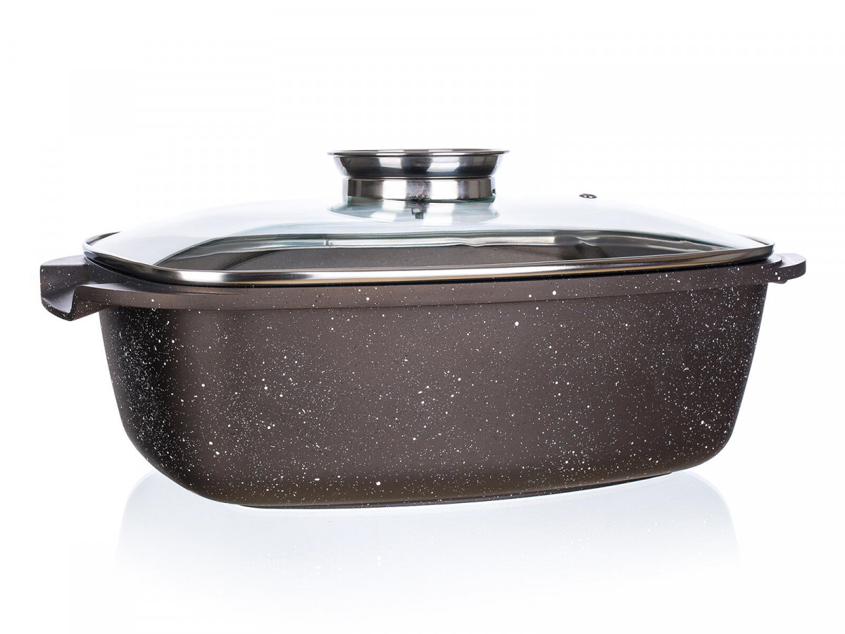 Pekáč 39,5 x 22 x 11 cm, nepřiln. povrch, PREMIUM Dark Brown, s aroma knobem. rozměry: 39,5 x 22 x 11 cm objem: 5,7 k tloušťka stěny: 2,2 mm tloušťka dna: 4,7 mm hnědý granitový dekor plně indukční dno Hliníkový litý pekáč PREMIUM DARK BROWN s nepřílnavým povrchem, se skleněnou termo poklicí a aroma knobem. Nepřilnavý povrch je velmi tvrdý a odolný proti poškrábání. Hrnec je odolný proti nárazu a deformaci tvaru. elektrika: ano plyn: ano sklokeramika: ano indukce: ano myčka: ano trouba: ano Šířka přepravní: 23 cm Výška přepravní: 13 cm Hloubka přepravní: 41 cm Objem přepravní: 12,259 dm3 Hmotnost přepravní: 2,271 kg Barva: hnědá Typ: pekáč Materiál: Objem: 0 l Sada: Listingový popis: Na kuřata: Poklice: Určení: Pozor křehké: