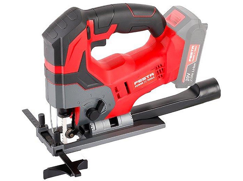 Pila přímočará AKU FESTA SHARE20V (bez baterie a nabíječky). Pila přímočará AKU - uchycení plátků typ BOSCH. Konstrukce pily navržena pro široké spektrum použití v různých profesích. Výkonný motor zajišťuje snadný a rychlý řez i tvrdými materiály (zavisí také na kvalitě a druhu použitého plátku!). Počet zdvihů plátku 0 - 2400 min -1, maximální doporučená síla řezaneho materiálu ocel, kovy - 6 mm, dřevo - 80 mm, hmotnost bez baterie 1.8 kg. Bezpečnostní pojistka spínače proti náhodnému spuštění, ergonomicky tvarované úchopvé části pily pro pohodlné držení a manipulaci při práci, umístění ovládacích prvků uzpůsobené pro pravou i levou ruku, osvětlení řezné plochy. Konstrukce pily umožňuje rychlé nastavení řezu pod úhlem až 45° na obě strany, základna doplněna o dorazovou lištu pro rovné přímé řezy, možnost napojení odsávání. FESTA SHARE 20 V - AKU přímočará pila je součástí skupiny výrobků s možností využívat Li-ion batarie 2.0 Ah a 4.0 Ah ve všech strojích takto označených. Li-ion technologie použitá v bateriích FESTA Power x tools nabízí možnost dobíjet baterie kdykoliv - bez snižování jejich kapacity, u Li-ion baterií také dochází k jen velmi pomalému samovybíjení. Pro běžnou práci je baterie s kapacitou 2.0 Ah dostačující - nabíjecí čas 40 min., pro práci s předpokladem větší zátěže - vrtání s příklepem apod. doporučujeme použít baterii s kapacitou 4.0 Ah.