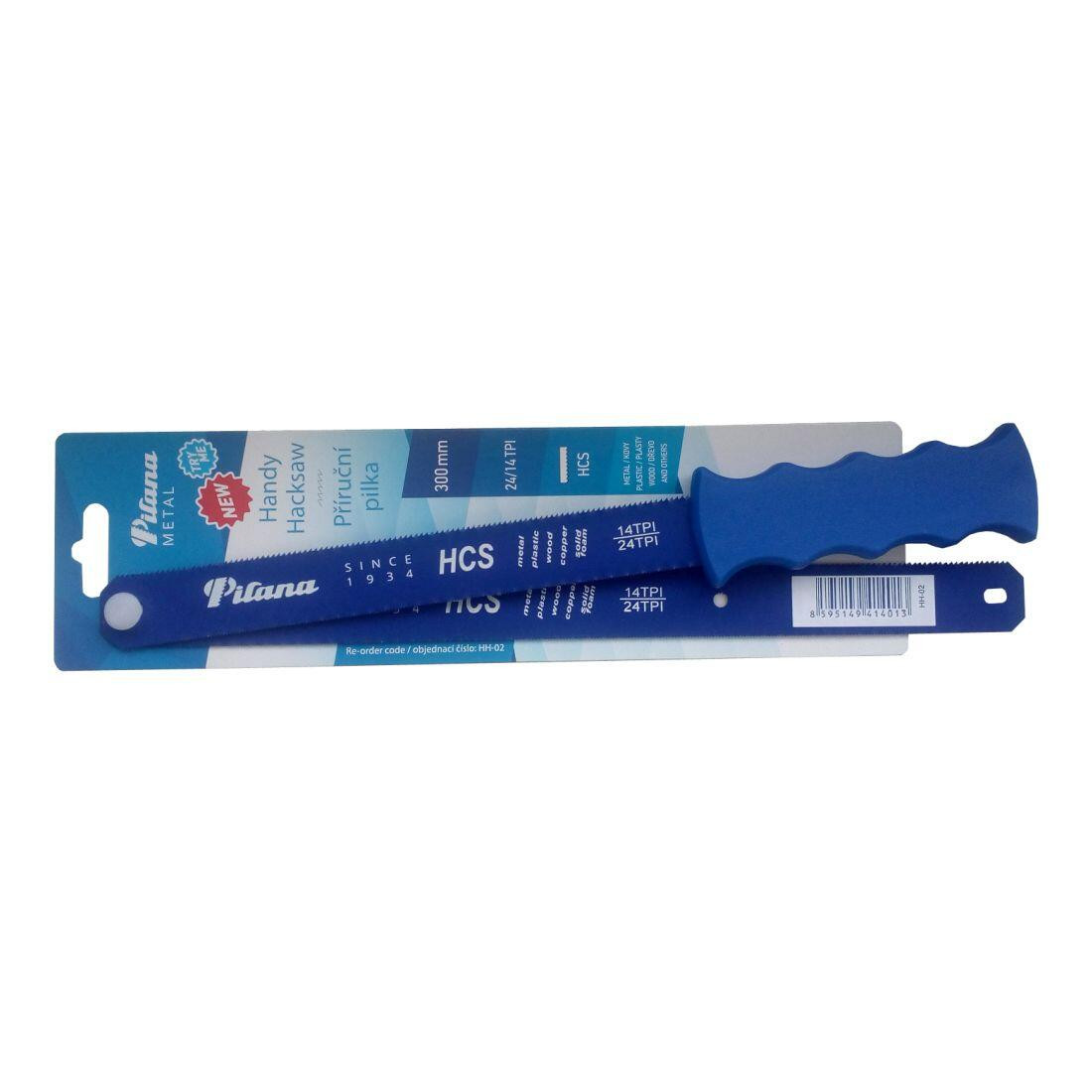 Příruční pilka je nástroj vhodný pro drobnější řezací práce. Její velkou výhodou oproti klasickému rámu na kov je možnost držet pilku jednou rukou a druhou (volnou) rukou si přidržovat řezaný materiál. Výhodou vůči malé pilce na kov je fakt, že příruční pilka není určena jen k řezání drobných součástí. Pilový list není omezen horní částí držadla a je s ním tedy možno řezat díly až do průměru ca 120 mm. Kombinované ozubení umožňuje řezat pestrou paletu materiálů od dřeva přes plasty až po ocel. Vložené pilové listy se od těch běžných liší třetím upínacím otvorem a jsou k dostání jako samostatná položka. Šířka přepravní: 8 cm Výška přepravní: 2 cm Hloubka přepravní: 33,5 cm Objem přepravní: 0,536 dm3 Hmotnost přepravní: 0,13 kg Pozor křehké: