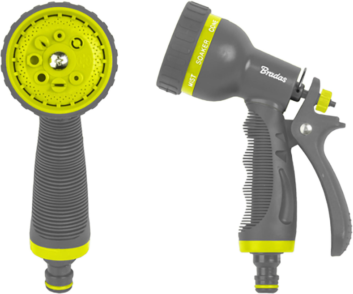 Pistole 8 funkcí LIME, ŠE/LIM. - zavlažovací pistole s 8 funkcemi - ergonomická rukojeť s protiskluzovým povrchem, která dobře padne do ruky - jednoduchá volba proudu vody otáčením kolečka a výběr z osmi funkcí, umožňuje zalévání různými proudy od přímého proudu až po jemný postřik - vybaveno zámkem, který umožňuje neustálé zavlažování na vybraný proud vody - jednoduché napojení zavlažovací pistole na hadici pomocí rychlospojky (rychlospojka není součástí balení) Tato zahradní stříkací pistole je ideální pro zavlažování a postřik rostlin a keřů na zahradě. Využít jí můžete rovněž pro čištění dlažby či jemné rosení. materiál: plast barva: šedá / limetková Hmotnost přepravní: 0,097 kg Šířka přepravní: 16 cm Výška přepravní: 20 cm Hloubka přepravní: 6 cm Objem přepravní: 1,92 dm3 Distribuce: Dosah: 0 m Listingový popis: Smart: Pozor křehké: