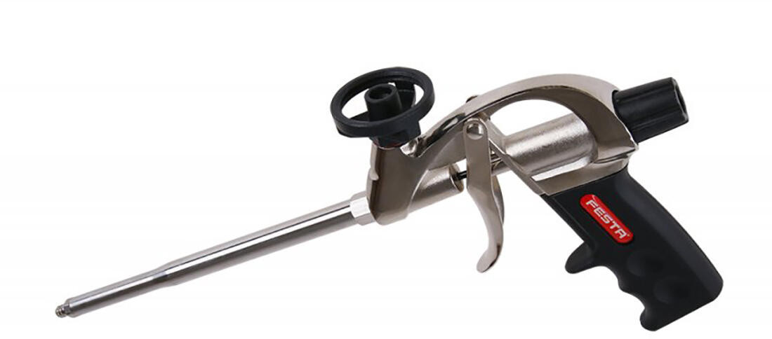 Pistole na montážní PUR pěny, teflon. závit a kulička FESTA. Profesionální celokovová pistole na PU (polyuratové) pistolové pěny. Plynulá regulace množství pěny, citlivá spoušť pro přesné a pohodlné dávkování, plastové aplikační trubičky pro přesné nanesení pěny na požadované místo. Závit pro uchycení s teflonovou vrstvou pro snadnější čištění. Teflonová kulička ventilu, vyměnitelná tryska. Šířka přepravní: 23 cm Výška přepravní: 5 cm Hloubka přepravní: 34 cm Objem přepravní: 3,91 dm3 Hmotnost přepravní: 0,54 kg Pozor křehké: