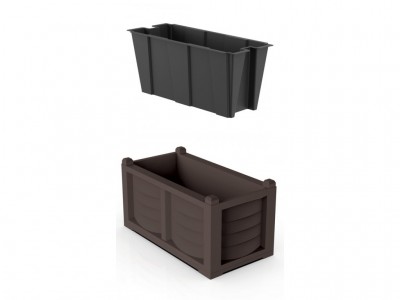 Jedná se o sestavu dvou prvků - Vnější truhlík a vnitřní výsadbové nádoba. Rozměr vnitřní nádoby přesně zapadá do tvaru vnějšího truhlíku. Nádobu snadno vyjmete díky profilovaným bočním úchytkám.