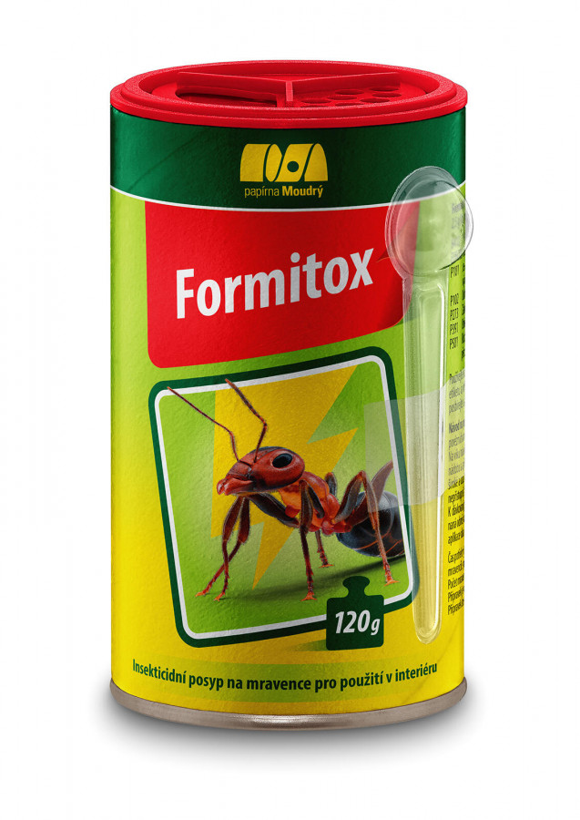 Přípravek na mravence FORMITOX 120 g, tubus. hmotnost: 120 g FORMITOX je účinný přípravek proti mravencům všeho druhu, kteří často pronikají zvenku do vnitřních prostor budov. Po požití návnady hmyz hyne. Výška přepravní: 10 cm Šířka přepravní: 6 cm Hloubka přepravní: 6 cm Objem přepravní: 0,36 dm3 Hmotnost přepravní: 0,12 kg Pozor křehké: