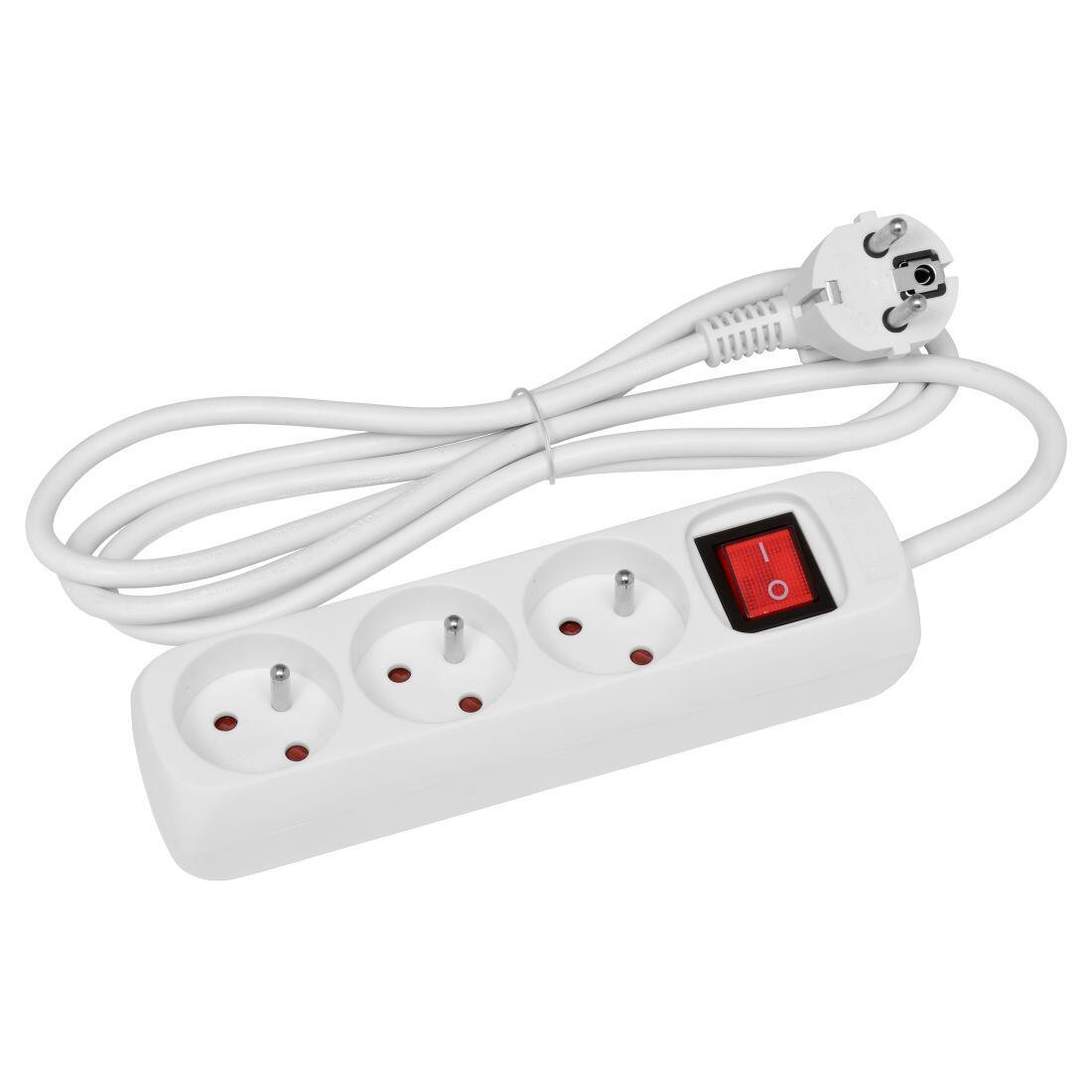 přívod prodlužovací 1,5m, 3 zásuvky s vypínačem