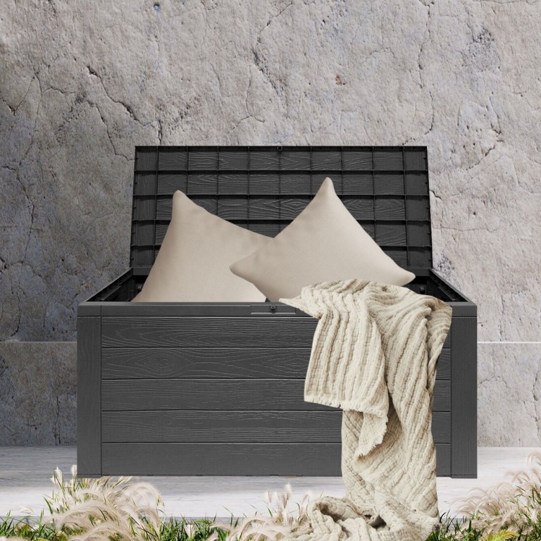 Je lehký, odvětraný a chrání uschované předměty před náhlým deštěm. Lehce v něm uschováte polštáře ze zahradního nábytku, deky, zahradní potřeby, menší nábytek nebo hračky pro děti. Vestavěný držák umožnožňuje uzamčení boxu.