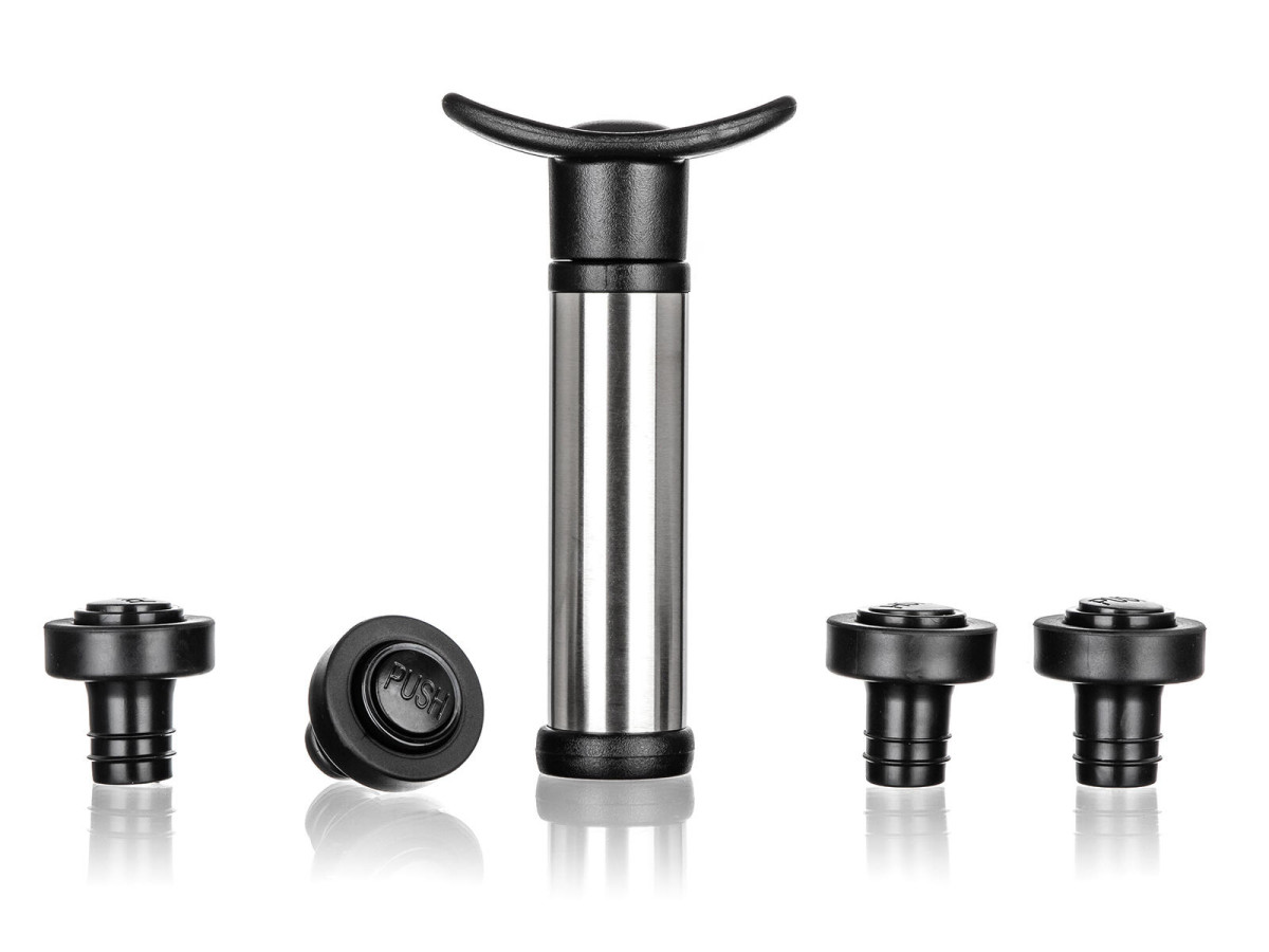 Pumpa vakuová +4 zátky CULINARIA. Vakuová pumpa je určena pro odstranění vzduchu z načaté láhve pro možnost skladování zbylého množství vína, díky vakuu si víno déle zachová svou chuť a vůni. Výška přepravní: 4,5 cm Šířka přepravní: 14 cm Hloubka přepravní: 20 cm Objem přepravní: 1,26 dm3 Hmotnost přepravní: 0,185 kg Pozor křehké: