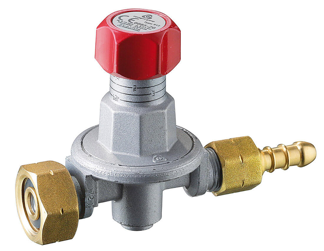 Regulátor tlaku 0,5-4 BAR (bez manometru) NP01011. výstup: G 3/8" L + hadičník pro hadici s vnitřním průměrem 8 mm Redukční ventil udržuje nastavený tlak v definovaných mezích, a to nezávisle na kolísání vstupního tlaku (z tlakové láhve) nebo změnách průtoku či teploty. Určen pro připojení na 10 kg plynovou láhev. Pro připojení 2 kg láhve je potřeba dokoupit ventil 2156UV nebo 2156UVB s bočním výstupem. Vzhledem k vysoké spotřebě plynu u stavebních hořáků doporučujeme používat láhve 10 nebo více kg. Šířka přepravní: 7,2 cm Výška přepravní: 21 cm Hloubka přepravní: 33 cm Objem přepravní: 4,9896 dm3 Hmotnost přepravní: 1,3 kg Pozor křehké: