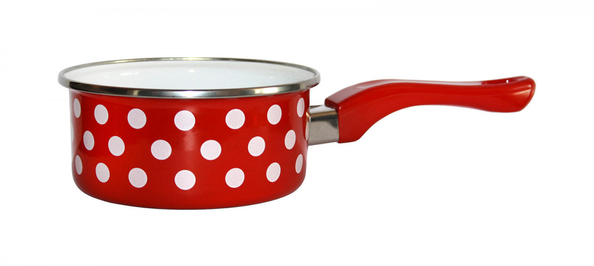 Rendlík s ručkou pr. 12 cm, 0,5 l, PUNTÍK, ČRV. průměr: 12 cm objem: 0,5 l barva: červená dekor: bílý puntík Nabízíme Vám nestárnoucí klasiku na trhu se smalovaným nádobím - červené smaltované nádobí s bílým puntíkem. Jedná se o dekor, který je nadčasový a své místo v českých domácnostech nachází již desítky let. O oblíbenosti dekoru svědčí i šíře sortimentu, kterou Vám u těchto výrobků nabízíme. S našimi puntíky tedy můžete pořídit téměř kompletní řadu nádobí, která Vám díky své vysoké kvalitě vydrží sloužit po dlouhá léta. Šířka přepravní: 13 cm Výška přepravní: 7 cm Hloubka přepravní: 24 cm Objem přepravní: 2,184 dm3 Hmotnost přepravní: 0,4 kg Barva: červená Materiál: smalt Průměr: 12 cm Počet kusů v sadě: 0 Druh nádobí: rendlík Listingový popis: Elektrický ohřev: Sada hrnců: Vnitřní materiál: Sklokeramický ohřev: Ano Ohřev v troubě: Poklice na cedění: Počet poklic: 0 Indukční ohřev: Ano Hrnec: Ano Objem (L): 0,5 l Mytí v myčce: Ano Odnímatelná rukojeť: Ne Určení: Pozor křehké: