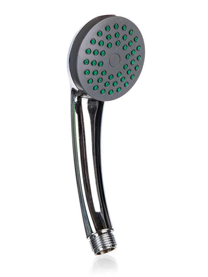Hlavice sprchová úzká, 1 funkce, Cr. průměr: 12 cm výška: 5,5 cm materiál: ABS plast, guma barva: stříbrno - šedá hmotnost: 0,06 kg Hlavice sprchová úzká s jednou funkcí je určená k použití pro sprchu a vanu. Hlavici připojíte spojovacím závitem G 1/2 palce, je opatřena také gumovými tryskami proti vodnímu kameni. Výška přepravní: 3 cm Šířka přepravní: 7 cm Hloubka přepravní: 20 cm Objem přepravní: 0,42 dm3 Hmotnost přepravní: 0,06 kg Pozor křehké: