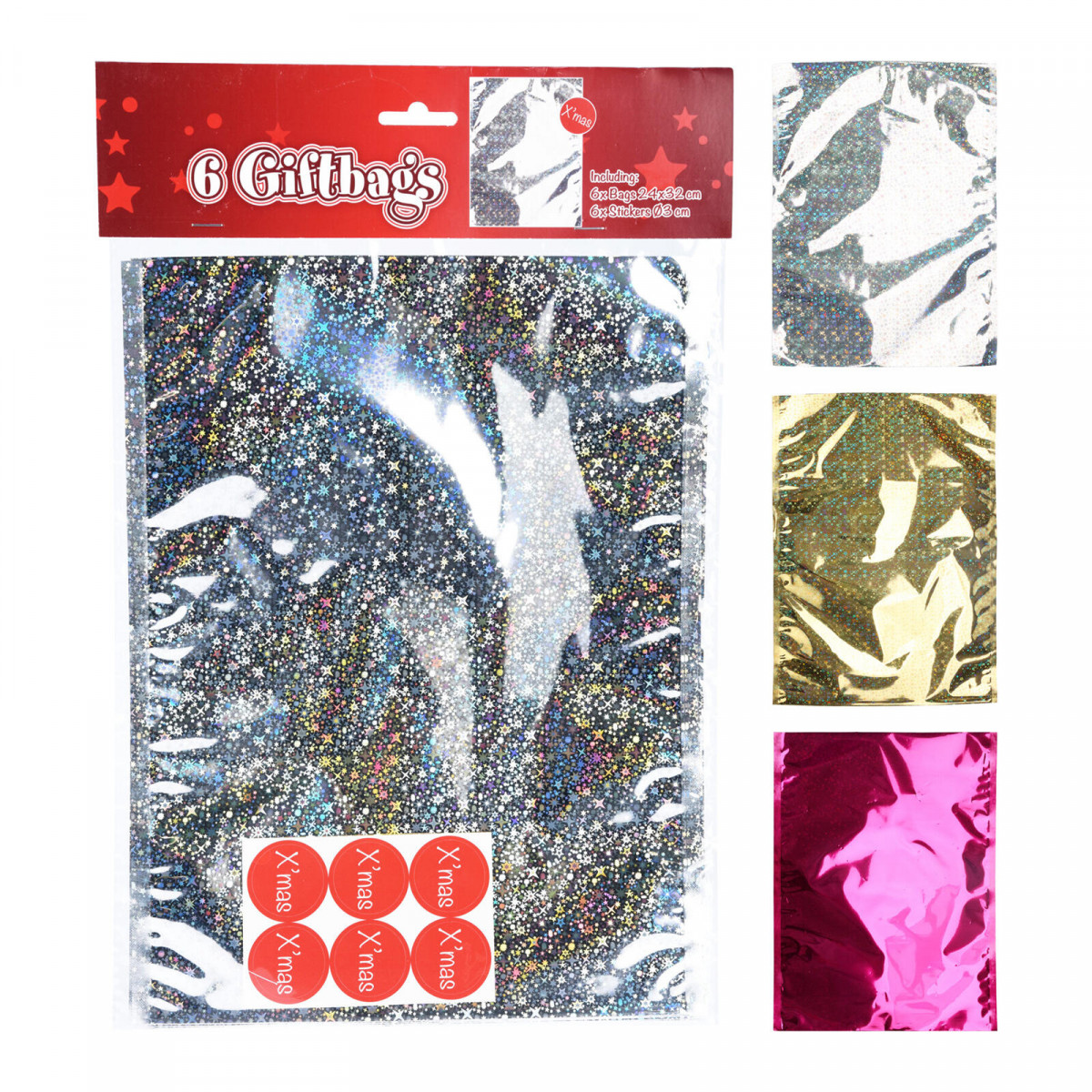 Sáček dárkový 32 x 24 cm (6 ks), samolepky pr. 3 cm (6 ks), dekor č. 1, mix barev. rozměry sáčku: 32 x 24 cm rozměry samolepky: průměr 3 cm balení: 6 + 6 ks materiál: polypropylen Praktické celofánové sáčky se samolepkami, vánoční design. Výška přepravní: 25,5 cm Šířka přepravní: 40 cm Hloubka přepravní: 0,5 cm Barva: Objem přepravní: 0,51 dm3 Hmotnost přepravní: 0,044 kg Výška: 0 cm Materiál: Šířka: 0 cm Licence: Průměr: cm Elektroodpad: Zobrazení času: Určení nábytku: Listingový popis: Výbava: Typ: Typ strojku: Pozor křehké: