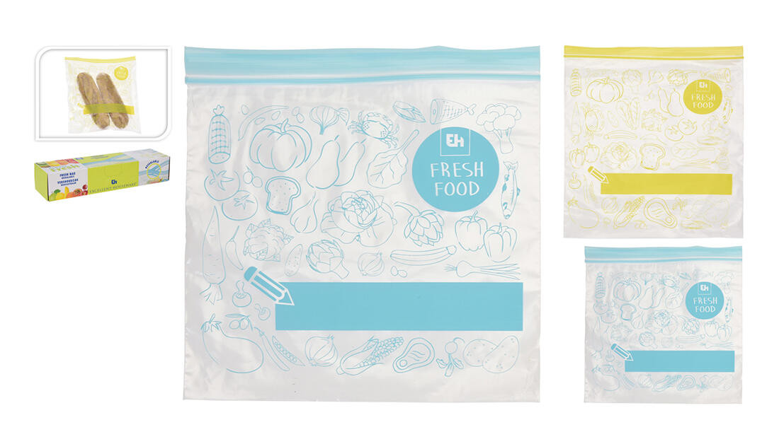 Sáček se zipem sada 40 ks (mix 1,2 l + 2,5 l) s potiskem. sáčky 1,2 l - 20 ks, 20,5 x 21 cm / 35 my sáčky 2,5 l - 20 ks, 24 x 29 cm / 40 my Univerzální sáčky se zipovým uzávěrem jsou vhodné pro mražení potravin, zachovávají přirozenou barvu i chuť. Jsou vhodné pro skladování potravin či věcí. Lze je opakovaně uzavírat pomocí speciální drážky. Rychlouzavíratelné sáčky chrání uchovávané předměty před vnějšími vlivy, zejména před vlhkostí a prachem. Výška přepravní: 5 cm Šířka přepravní: 7 cm Hloubka přepravní: 25 cm Barva: Objem přepravní: 0,875 dm3 Hmotnost přepravní: 0,232 kg Výška: 0 cm Materiál: Šířka: 0 cm Licence: Průměr: cm Elektroodpad: Zobrazení času: Určení nábytku: Listingový popis: Výbava: Typ: Typ strojku: Pozor křehké:
