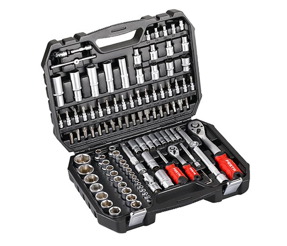 Kvalitní gola sada Je vhodná díky kvalitě použitých materiálů a zpracování v profesionální autodílně nebo servisu. Všechny části jsou vyrobeny z vysoce kvalitní chrom-vanadiové oceli. Niklová povrchová úprava. Hroty bitů jsou ze slitiny oceli S2. Ráčny mají jemné dělení 72 zubů, tělo ráčny z CrV oceli, zubový mechanismus z S2 oceli, ergonomicky tvarovanou rukojeť se zdravotně nezávadnou gumou. Nový design plastového kufru z primárního materiálu s kovovými uzávěry a panty víka. 10 let záruka. Šířka přepravní: 36 cm Výška přepravní: 8 cm Hloubka přepravní: 27 cm Objem přepravní: 7,776 dm3 Hmotnost přepravní: 6,216 kg Pozor křehké: