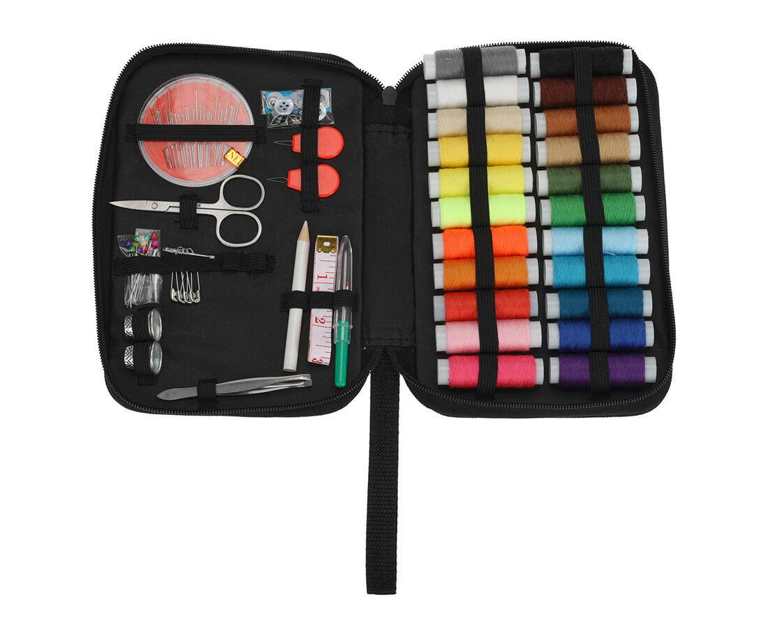 Sada na šití v pouzdře (47 ks). rozměry: 21 x 15 cm Velmi praktická sada na šití, kterou bychom mohli nazvat "krabičkou první pomoci" pro každého, kdo musí cokoliv zašít či opravit na svém oblečení. Obsahuje totiž základní potřeby, bez kterých se neobejdete. Výška přepravní: 4 cm Šířka přepravní: 14,5 cm Hloubka přepravní: 21,5 cm Barva: Objem přepravní: 1,247 dm3 Hmotnost přepravní: 0,263 kg Výška: 0 cm Materiál: Šířka: 0 cm Licence: Průměr: cm Elektroodpad: Zobrazení času: Určení nábytku: Listingový popis: Výbava: Typ: Typ strojku: Pozor křehké: