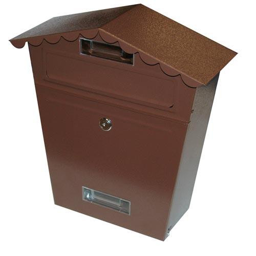 rozměry (Š x V x H): 290 x 360 x 105 mm barva: hnědá Poštovní schránka stříška V je vhodná k umístění u vašich rodinných domů. Na přední straně schránky je otvor pro vhoz a výběr pošty, společně se zámečkem. Šířka přepravní: 33 cm Výška přepravní: 14 cm Hloubka přepravní: 37 cm Objem přepravní: 17,094 dm3 Hmotnost přepravní: 2,38 kg Výška: 36 cm Šířka: 29 cm Hloubka: 10,5 cm Materiál: kov Barva: hnědá Hmotnost: 0 kg Listingový popis: Výbava: Typ: Pozor křehké: