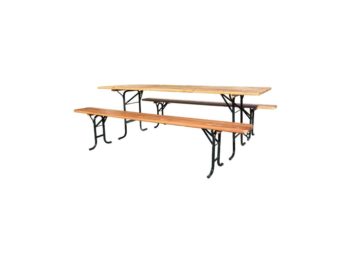 rozměr stolu (D x Š x V): 220 x 70 x 76,5 cm rozměr lavičky (D x Š x V): 220 x 25 x 46,5 cm Zahradní set k posezení, skládající se z 2 laviček a stolu je ideální pro oslavy na zahradě.