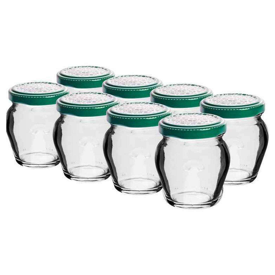 Sklenice s barevným víčkem - mix barev, víčko součástí balení. objem: 106 ml balení: 8 ks Ideální pro skladování potravin. Šířka přepravní: 25 cm Výška přepravní: 6,5 cm Hloubka přepravní: 12 cm Objem přepravní: 1,95 dm3 Hmotnost přepravní: 0,85 kg Pozor křehké: Ano