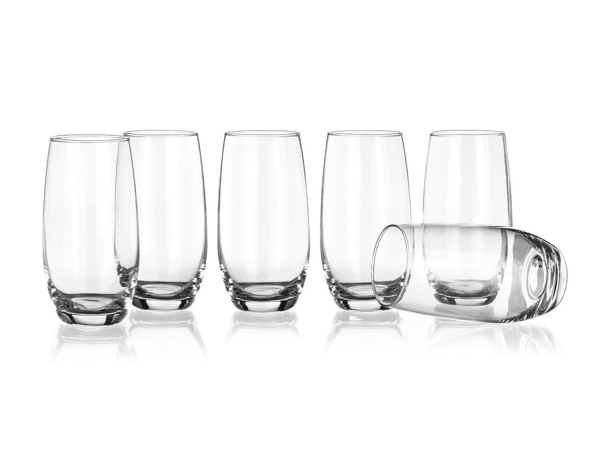 Sklenice 360 ml, DINING, vysoká (6 ks). objem: 360 ml balení: 6 ks Sklenice DINING značky ROYAL LEERDAM, jsou ideální k podávání studených limonád, džusů a ostatních nápojů. Velmi kvalitní sklo holandské výroby. Tvrzený okraj skla zajišťuje odolnost a dlouhou životnost. Výška přepravní: 14 cm Šířka přepravní: 15 cm Hloubka přepravní: 22 cm Objem přepravní: 4,62 dm3 Hmotnost přepravní: 0,53 kg Pozor křehké: Ano