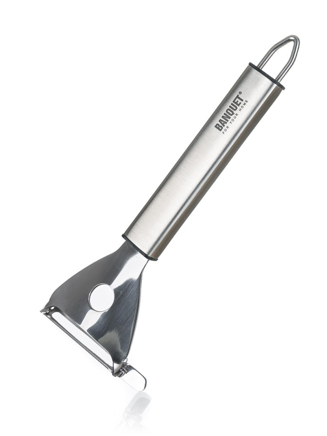 Škrabka s příčnou čepelí EXCELLENT 17,5 cm, nerez. délka: 17,5 cm materiál: nerez Škrabka s příčnou čepelí EXCELLENT na loupání různých druhů ovoce a zeleniny. Škrabka je vyrobena z nerezové oceli a má praktické držadlo s očkem pro možnost závěsu. Výška přepravní: 1,5 cm Šířka přepravní: 7 cm Hloubka přepravní: 18 cm Objem přepravní: 0,189 dm3 Hmotnost přepravní: kg Pozor křehké: