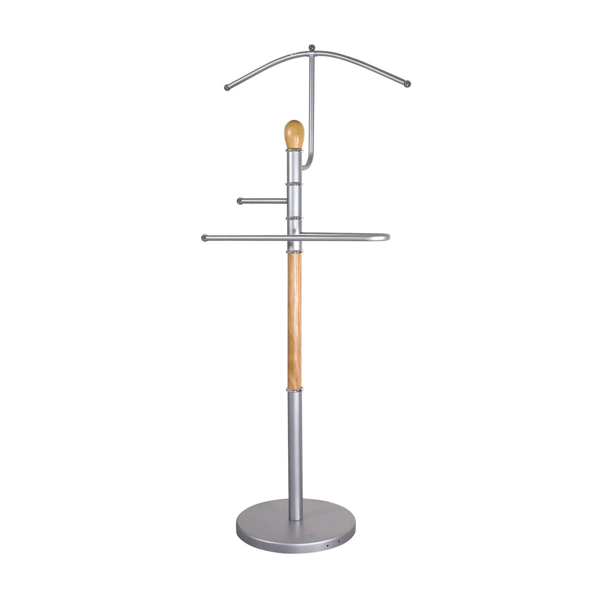 Sluha němý 46 x 27 x 107 cm, Cr / dřev. světlý. rozměry: 46 x 27 x 107 cm materiál: chrom, dřevo Němý sluha v provedení chromu a dřeva je praktický pomocník na odkládání oděvu a nejrůznějšího oblečení. Výška sluhy je 107 cm. Konstrukce má stabilní základnu, chrom je v matném provedení, dřevo ve světle hnědé barvě. Výška přepravní: 7,5 cm Šířka přepravní: 29 cm Hloubka přepravní: 42 cm Objem přepravní: 9,135 dm3 Hmotnost přepravní: 3,58 kg Pozor křehké: