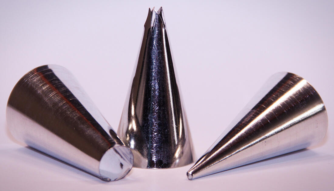 Zdobicí špička sada 3díl., pocín., mix tvary č. 3. Balení obsahuje 3 ks zdobicích špiček. Ideální pomocník pro zdobení dortů a dezertů. Špičky se také hodí k pečení a plnění zákusků a cukroví. Vyrobeno z pocínovaného plechu. Připraveno k použití s bavlněným cukrářským sáčkem. Sáček není součástí balení. Šířka přepravní: 5 cm Výška přepravní: 3 cm Hloubka přepravní: 5 cm Objem přepravní: 0,075 dm3 Hmotnost přepravní: 0,03 kg Pozor křehké: