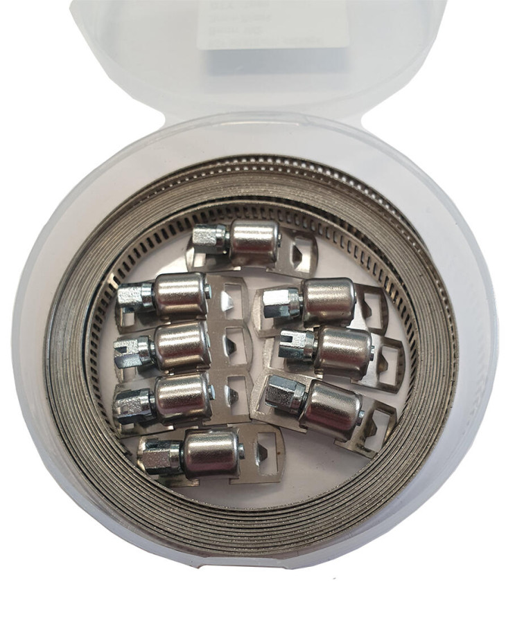 Spona hadicová pás BSF 8 mm / 3 m + 8 zámků, W2B. šířka: 3 mm délka: 3 m počet zámků: 8 materiál: pásek nerez, zámek pozink Sada obsauje nekonečný pás BSF šíře 8 mm, délka 3 m + 8 zámků. Baleno v plastové krabičce. Výhodou nekonečného pásku BSF se zámkem je nezávislost uživatele na spojovaném průměru, spona se prostě vyrobí přímo na míru. Manipulace je přitom velmi jednoduchá, po zastřižení požadované délky pásku se zámek jednoduše navleče na pásek a utáhne. Použití pásu je univerzální v domácnosti i v průmyslu. Pásek je oblíben u řidičů nákladních vozů, tahačů a autobusů pro rychlé řešení kritických situací. Šířka přepravní: 9,5 cm Výška přepravní: 3 cm Hloubka přepravní: 9,5 cm Objem přepravní: 0,27075 dm3 Hmotnost přepravní: 0,16 kg Pozor křehké: