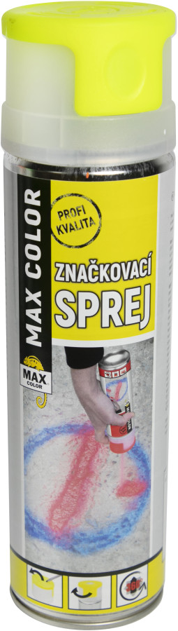 Značkovací sprej MAX COLOR 500 ml, ŽL svítivá. použití: při vytyčování u geodetických prácí, na stavbách, při práci na výkopech, v lesním průmyslu, apod. objem: 500 ml barva: svítivá žlutá Značkovací sprej je vyroben z kombinace speciálních pojiv. Extrémně rychlá doba schnutí, cca 2-3 min. Hodí se na dřevo, beton, kámen, asfalt, štěrk, písek, zeminu, trávu apod. Výborná krycí schopnost a přilnavost, odolnost proti vodě a povětrnostním vlivům. Tryska je chráněna speciálním uzávěrem, který chrání sprej před samovolným spuštěním při dopravě a dále chrání ruce při práci proti znečištění barvou. Speciální tryska umožňuje nástřik všemi směry, sprej se může držet při práci v jakékoliv poloze. Barva je dobře viditelná, vydrží na povrchu 4-6 měsíců i déle, záleží do jaké míry je vystavena klimatickým vlivům a slunečnímu záření. Vystačí na 40-60 m souvislé čáry, v závislosti na požadované šířce nástřiku a povahy podkladu. Může se použít i při nízkých teplotách a drží i na vlhkém podkladu. Šířka přepravní: 6,5 cm Výška přepravní: 23,7 cm Hloubka přepravní: 6,5 cm Objem přepravní: 1,001325 dm3 Hmotnost přepravní: 0,52 kg Pozor křehké: