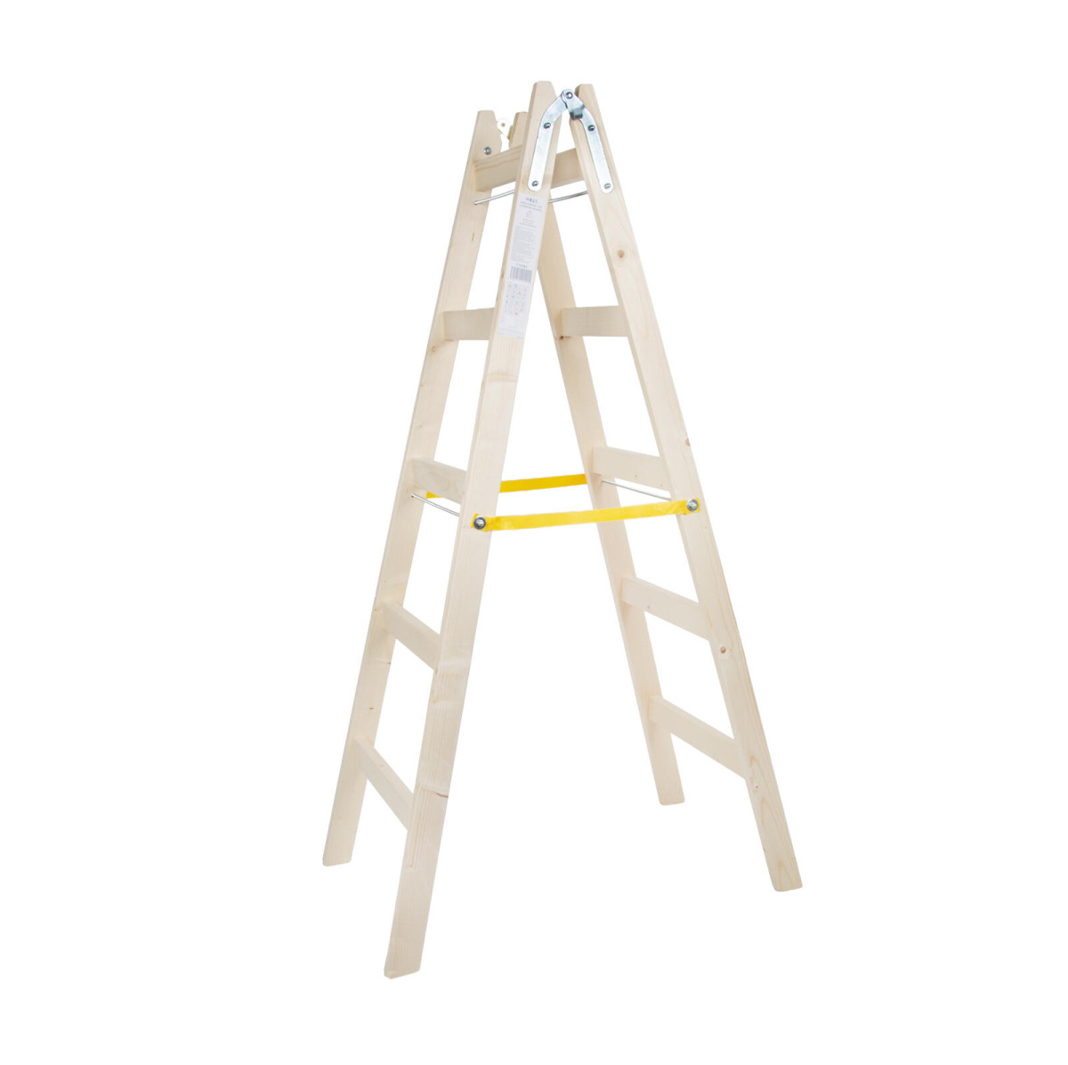 Malířské štafle 5 příček PROFI dřevěné. nelakované. počet příček: 5 výška: 1,6 m hmotnost: 6,5 kg nosnost: 150 kg Malířské štafle, které se používají hlavně při technických pracích a opravách. Využijí je nejen profesionální malíři, ale také domácí kutilové. Vhodné pouze do terénu s rovným povrchem. Včetně kování, háku na barvu, dvou bočních pásek. FSC certifikace dřeva. Štafle mají široké spektrum použití a to nejen pro malíře pokojů, ale i pro různé řemeslníky, či zahrádkáře. Certifikace EN-131 Výška přepravní: 160 cm Šířka přepravní: 54 cm Hloubka přepravní: 14 cm Objem přepravní: 120,96 dm3 Hmotnost přepravní: 6,5 kg Pozor křehké: Materiál: dřevo